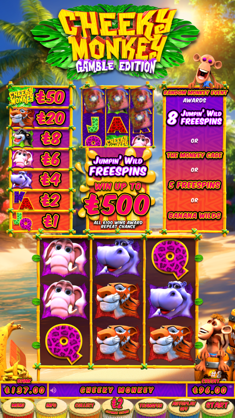 The Innov8 Cheeky Monkey is ready to misbehave! This fun slot features Free Spins, the Lock-and-Spin feature, the Random Monkey Wilds feature, and, of course, roaming Jumpin’ Monkey Wild Free Spins.